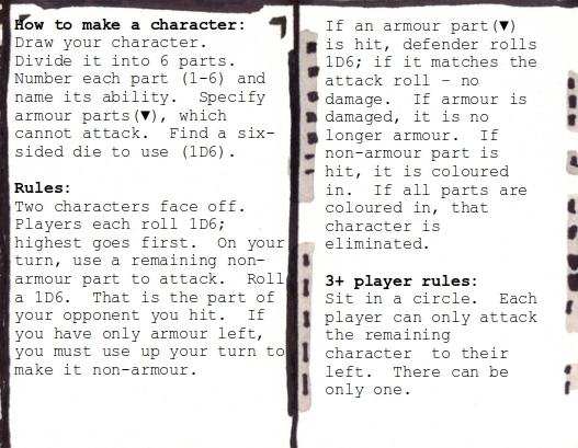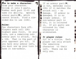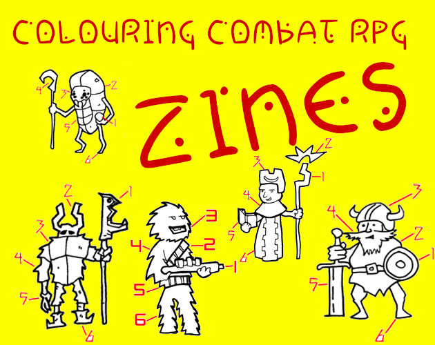 I made pocketable Zines for Colouring Combat to make it easier to take and play. This version focuses more on dueling against your friends.