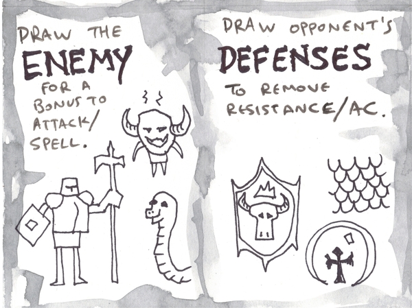 Draw specific things you want to do to your enemies to make your attacks more powerful.