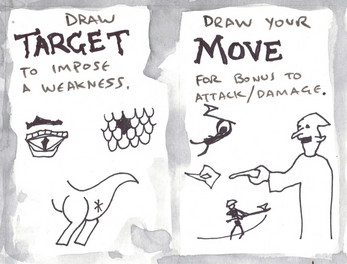 This Zine allows you to add drawing mechanics to the combat section of your favourite game system to increase participation.
