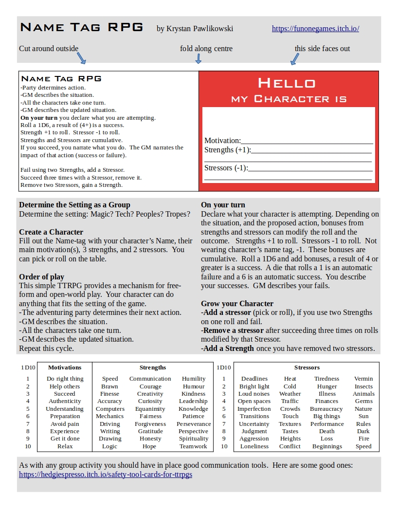 | Tags | Fantasy, micro-rpg, Print & Play, Sci-fi, Tabletop role-playing game |